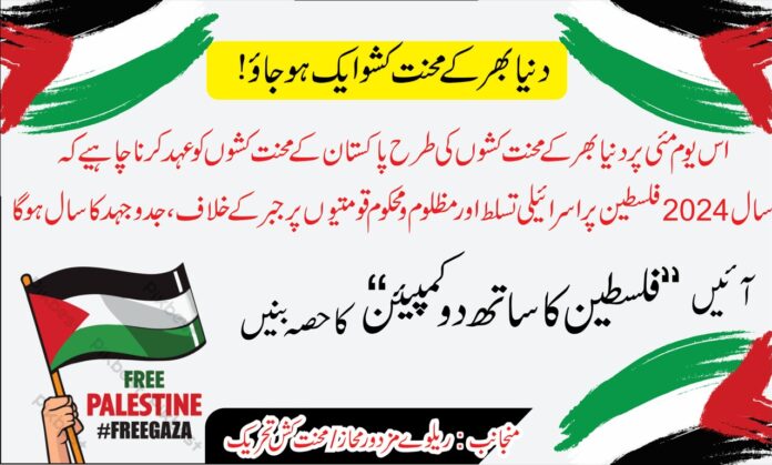 یکم مئی 2024 کے موقع پر، ہم پاکستان بھر کی لڑاکا ٹریڈ یونینز اور فیڈریشنزکے سامنے ملکی سطح پر جمہوری طریقے سے طے شدہ جدوجہد کی بنیاد پر بین الاقوامی ٹریڈ یونین ازم پر عمل کرنے کی خواہش کا اظہار کرتے ہیں۔ اس عمل کے بنیادی مقاصد ایک دوسرے کی تشہیر، حمایت اور ہم اہنگی ہے۔